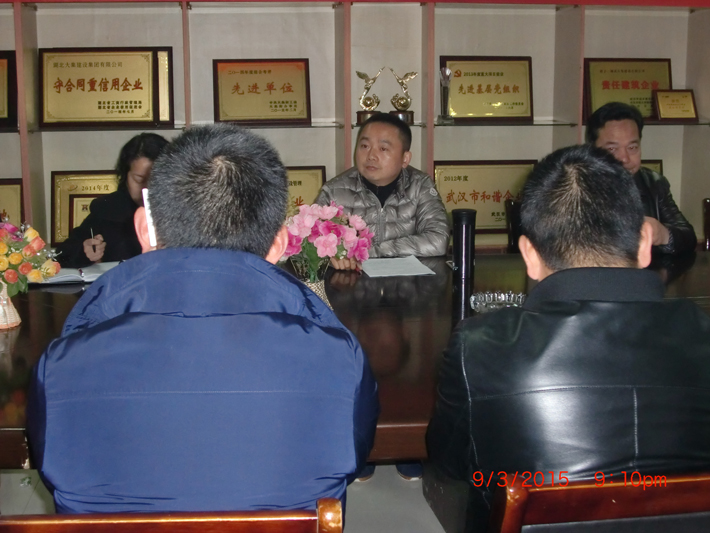董事長徐濤最后提要求,徐董要求公司每一個(gè)崗位員工都能發(fā)揮應(yīng)有的作用,人人都當(dāng)實(shí)干家,當(dāng)天工作不過夜,當(dāng)月工作提前抓,狠抓落實(shí)過程,確保目標(biāo)落地。2015年公司的總目標(biāo)是要超越2014年,在公司推行新的薪酬和績效管理制度,確保各施工項(xiàng)目安全、質(zhì)量和進(jìn)度,努力爭(zhēng)創(chuàng)質(zhì)量和安全黃鶴杯各二次;建設(shè)一支紀(jì)律嚴(yán)明,能接業(yè)務(wù)、能打勝仗的項(xiàng)目經(jīng)理隊(duì)伍,努力培育公司參入市場(chǎng)競(jìng)爭(zhēng)的能力,使公司業(yè)績、員工收入同步增長。徐董并對(duì)公司各部門2015年的工作作了具體安排。