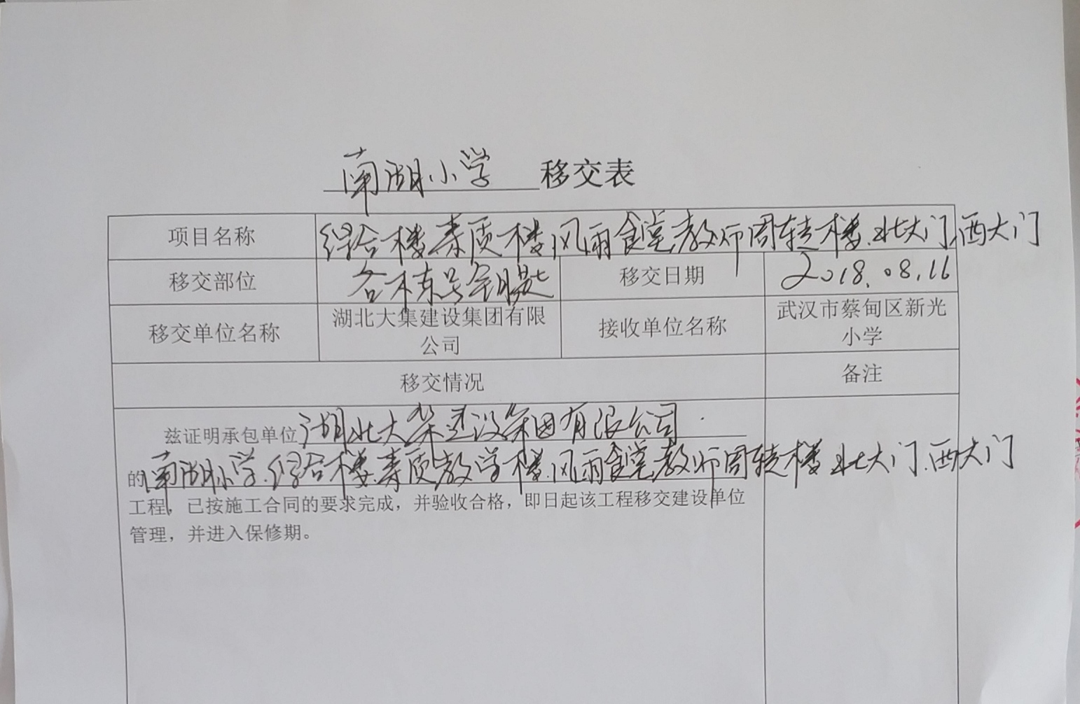 今天,集團(tuán)公司正式向南湖小學(xué)交付各棟號鑰匙!
