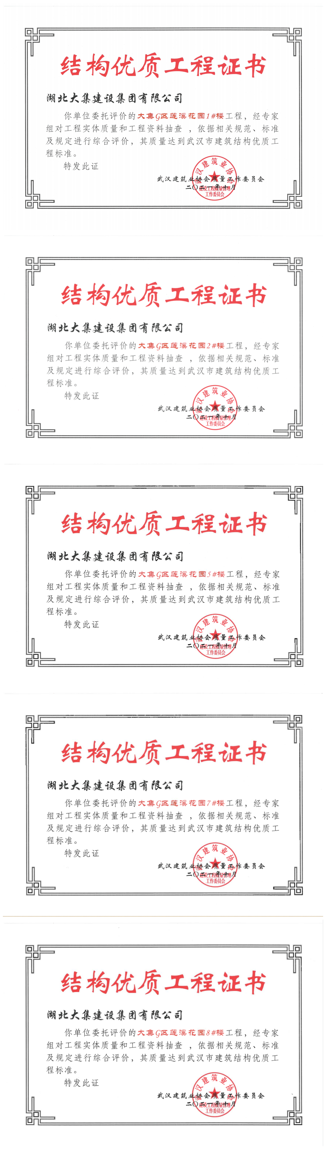 近日,由湖北大集建設(shè)集團(tuán)承建的大集G區(qū)蓮溪花園項目1#2#、5#7#8#樓榮獲“武漢市建筑結(jié)構(gòu)優(yōu)質(zhì)工程”榮譽。