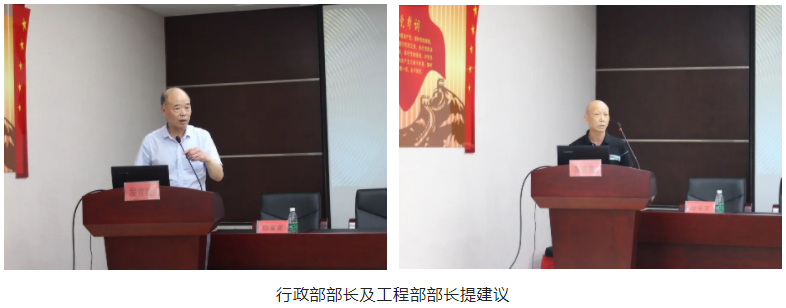 隨后,行政部部長(zhǎng)李漢毛提出優(yōu)化生產(chǎn)調(diào)度會(huì)會(huì)議形式及嚴(yán)控合同中商票付款的建議,工程部部長(zhǎng)王均家則結(jié)合各項(xiàng)目匯報(bào)的情況依次進(jìn)行詳細(xì)地點(diǎn)評(píng)指導(dǎo)。