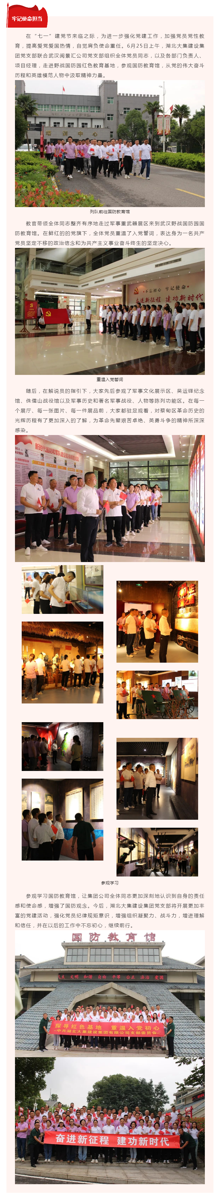 黨史學習教育|湖北大集建設集團黨支部赴野戰(zhàn)國防園參觀學習
