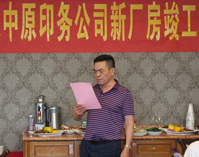 6月26日,武漢中原印務(wù)有限責(zé)任公司隆重舉行新廠(chǎng)房竣工答謝會(huì),集團(tuán)副總經(jīng)理徐家富、項(xiàng)目經(jīng)理田建新、招投標(biāo)部部長(zhǎng)胡鵬、財(cái)務(wù)部部長(zhǎng)鄧雪芬等受邀出席。